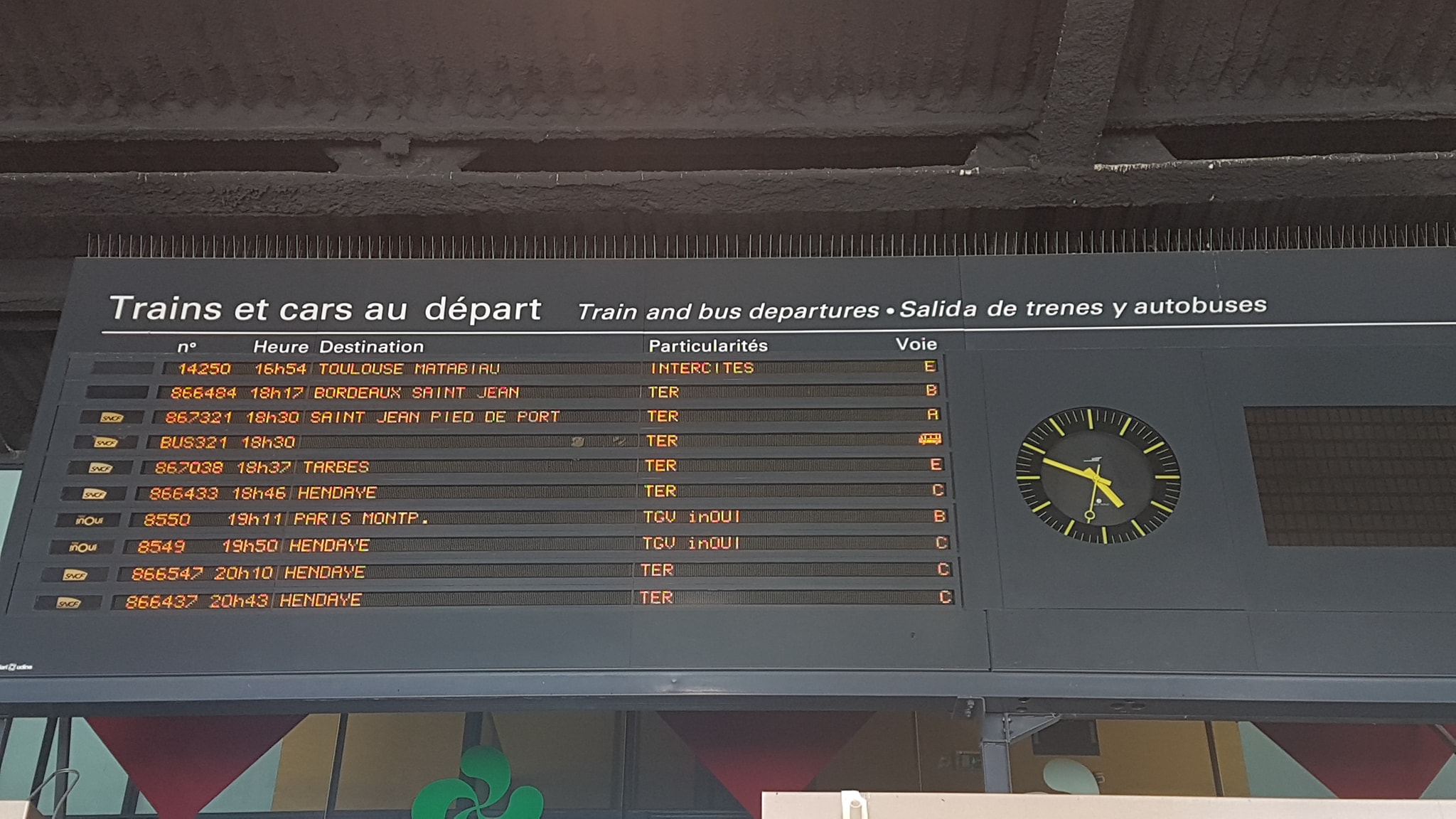 TGV抵達BAYONNE,銜接前往SSPJ聖讓彼得堡的TER火車還有1.5小時才來。推薦大家可以步出車站前往市區走走,順便活動筋骨,舒緩坐了4小時火車的疲倦。而我根本沒有攜帶或準備這邊的任何資訊,只要跟著人群和手機的Google Map協助就可以了其實。
