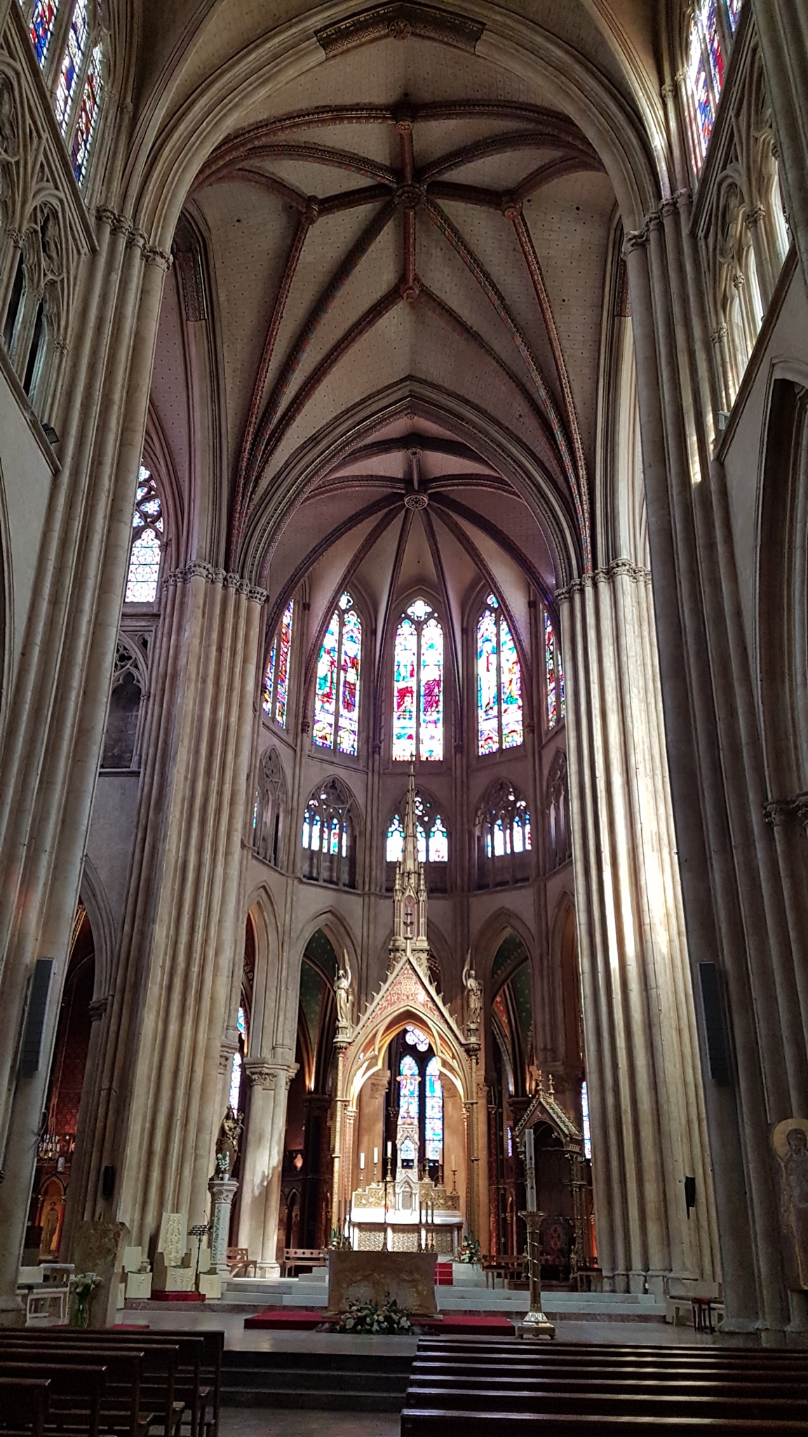 走出車站後,經過一個好長的橋,寬廣的河岸邊座落著漂亮的屋子,陽光灑下來非常舒服。進入河岸的另一邊是市區,有點小山城感但非常熱鬧,狹長的街道底端可以看見大教堂高聳的尖塔,因此根本不需要害怕迷路,道路就是依著教堂呈現放射狀出去,像是巴黎的凱旋門的邏輯。