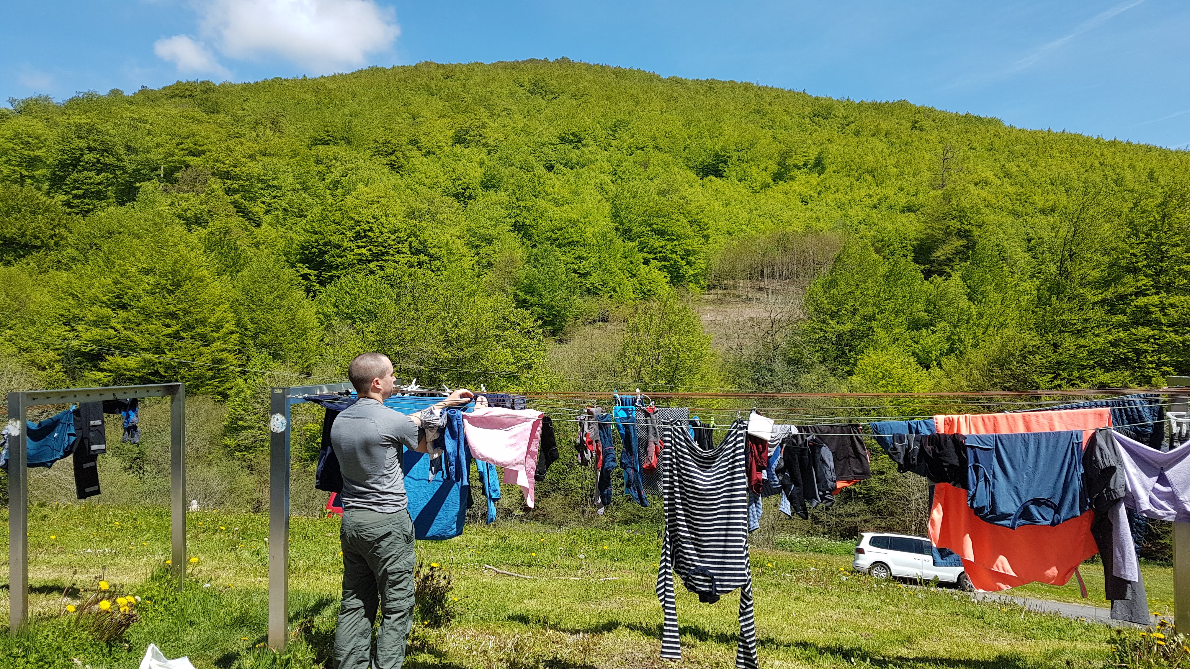大約在下午2點抵達庇護所。第一天走了這麼多,抵達時沈浸在好佩服自己的泡泡裡。發現朝聖者們都火速去排隊入住,同時向志工詢問寄送來的包包在何處。我立刻收起自我感覺良好也火速進入隊伍。畢竟這太重要,接下來的三十多天都需要它啊!