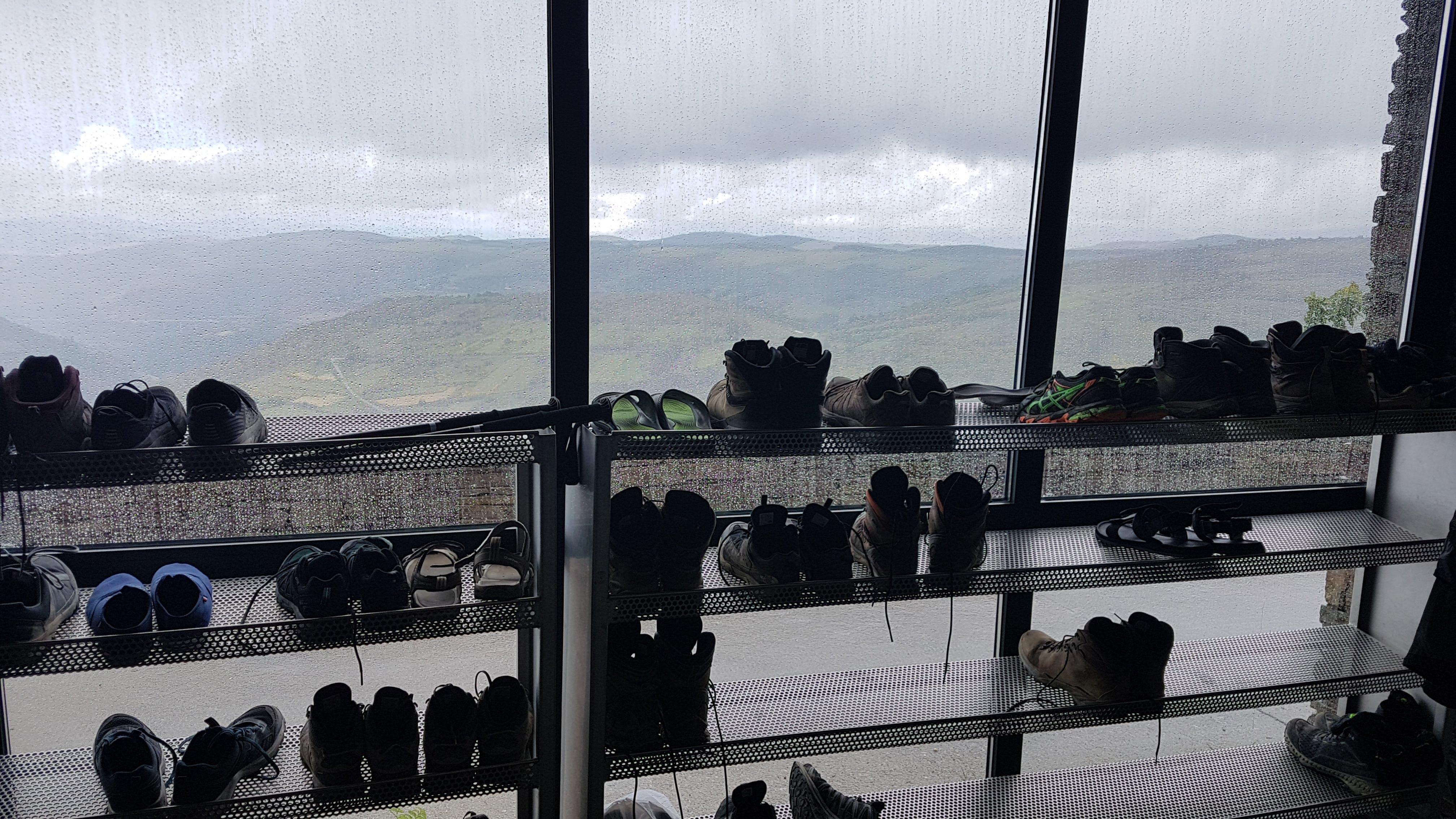 某天早上出發冷得要命還下雨,終於一小時左右大概走了4−5公里後,在終於出現的bar(看到時,覺得店家在發光)吃早餐休息。很冷很濕,我像是一隻人家不要的,且淋濕的小貓窩在桌旁,捧著熱咖啡溫暖雙手時,她過來問我是否不介意一起坐(餐廳位置還很多),當下我說了:Yes,我很樂意一起坐。