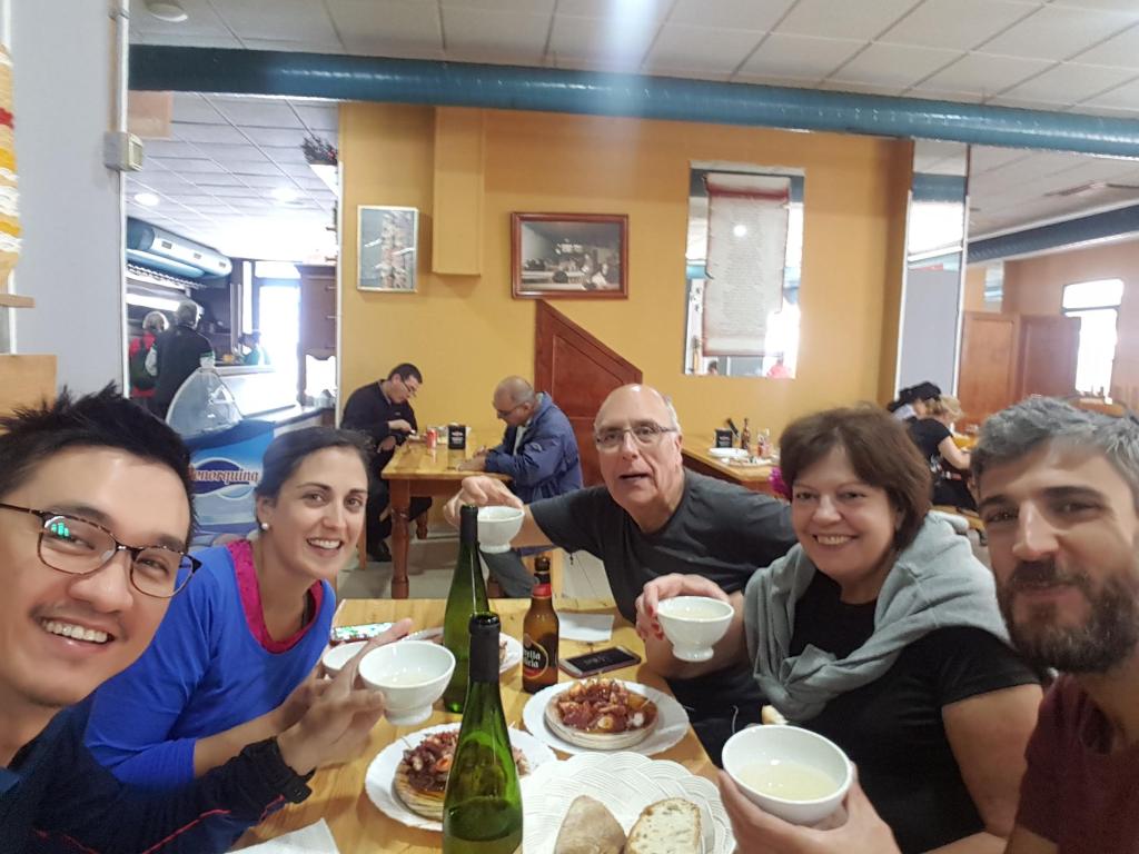 我說很訝異她們全家那麼溫暖的照顧我。女兒卡門回應:這就是朝聖之路的精神。然後她轉述我的話給爸爸聽,他翻了過來看我,給我一個眼神好像又說了那句:在西班牙,你要聽我的。